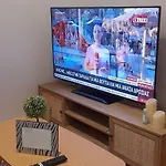 Deze accommodatie heeft een balkon, een terras en een zitruimte, evenals uitzicht over de berg en is ingericht met een bank. Om het verblijf van gasten in dit appartement nog aangenamer te maken, zijn er op de kamer mediadiensten zoals een flatscreen TV met satellietzenders, naast een strijkijzer en strijkplank, airconditioning. Deze accommodatie heeft een apart toilet en een douche voor uw comfort. Je vindt er ook een haardroger, toiletartikelen voor gasten en handdoeken.
